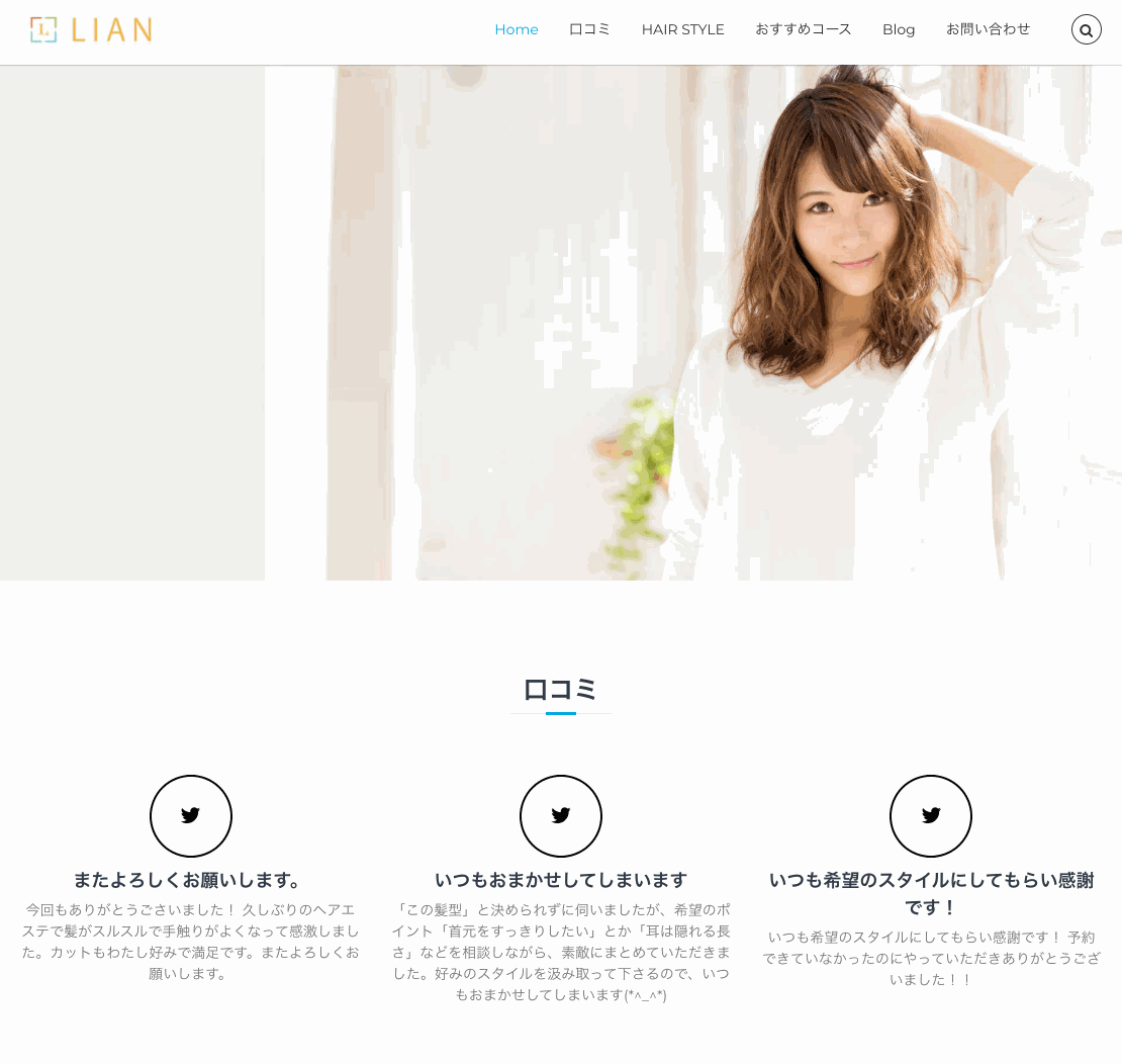 20~30代の女性のお客様が多い店舗の想定のため、お客様の層に最適な画像素材を使用しております。